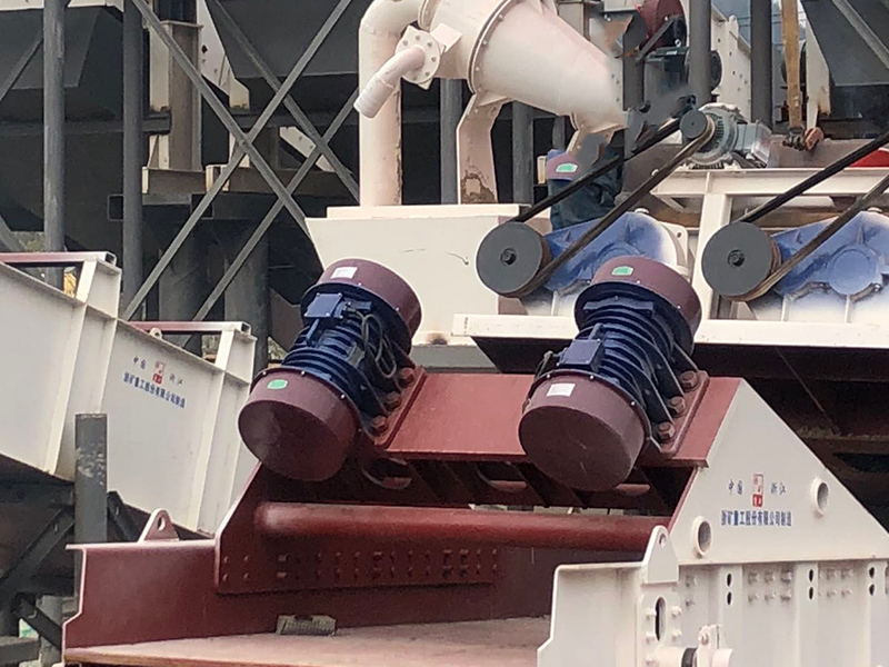 ZJS型直線振動篩是采用雙振動電機驅動,當兩臺振動電機做同步、反缶旋轉時,其偏心塊所產(chǎn)生的激振力在平行于電機軸線的方向相互抵消,在垂直于電機軸的方向疊為一合力,因此篩機的運動軌跡為一直線。其兩電機軸相對篩面有一傾角,在激振力和物料自重力的合力作用下,物料在篩面上被拋起跳躍式向前作直線運動,對中、細粒度物料進行干濕式篩分、脫水、脫介、脫泥。